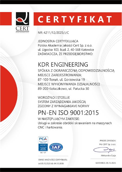KDR Engineering • Produkcja, obróbka metali i tworzyw dla przemysłu, obróbka CNC, hartowanie indukcyjne, spawanie.